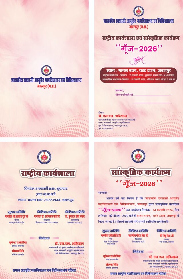 आयुर्वेद कॉलेज द्वारा राष्ट्रीय कार्यशाला का आयोजन 13 को. देश के प्रतिष्ठित आयुर्वेद विशेषज्ञ होंगे शामिल. सांस्कृतिक कार्यक्रम 14 फरवरी को.