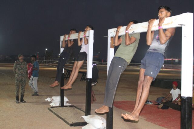 अग्निवीर भर्ती रैली में मंगलवार की रात को जबलपुर, कटनी, शहडोल, उमरिया व अनूपपुर जिले के युवाओं ने भर्ती रैली में भाग लिया। इस दौरान युवाओं का शारीरिक दक्षता परीक्षण एवं चिकित्सा जांच के साथ-साथ दस्तावेजों का भी सत्यापन किया गया है। उल्लेखनीय है कि कटनी में 24 फरवरी तक आयोजित होने वाले अग्निवीर भर्ती में 15 जिलों के 5 हजार 374 उन युवाओं को आमंत्रित किया गया है। जिन्होनें सेना द्वारा आयोजित कामन इंट्रेंस टेस्ट की लिखित परीक्षा को पास कर लिया है। जबकि गुरूवार 19 फरवरी को सभी जिलों के 730 युवा तथा शुक्रवार 20 फरवरी को 638 युवा एवं सेामवार 23 फरवरी को मध्यप्रदेश एवं छत्तीसगढ़ राज्य की महिला अग्निवीर भर्ती रैली में शामिल होंगी और दस्तावेजों का सत्यापन करांएगी इसके साथ ही फिजिकल एवं मेडिकल परीक्षण भी होगा।