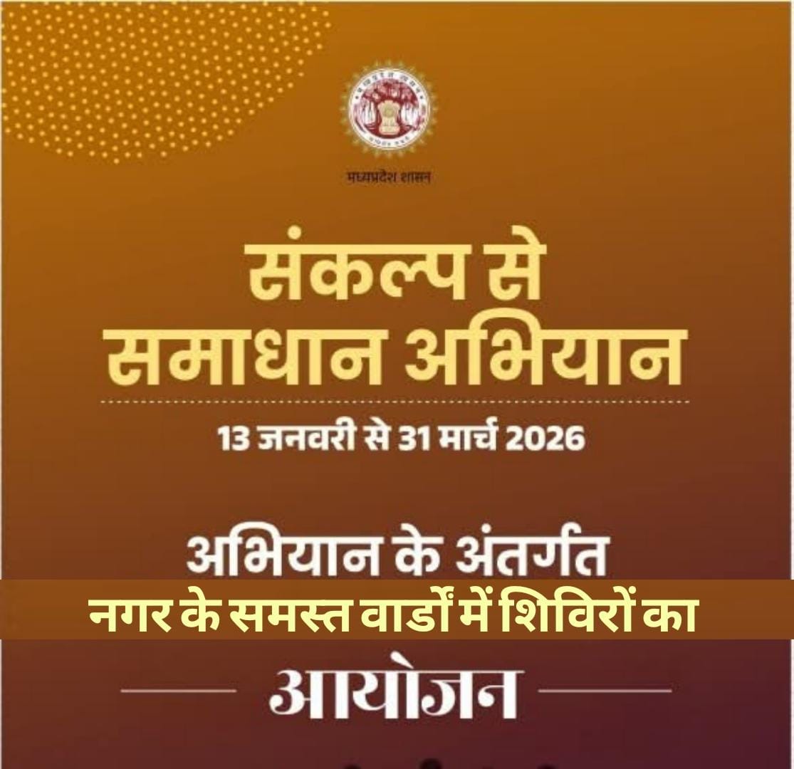 कटनी – संकल्प से समाधान अभियान के द्वितीय चरण के तहत नगर निगम सीमा क्षेत्र के विभिन्न वार्डो हेतु 16 फरवरी से 16 मार्च 2026 तक जोनवार विशेष शिविरों का आयोजन करते हुए जरूरतमंद एवं पात्र हितग्राहियों को शासन की हितग्राही मूलक योजनाओं एवं सेवाओं से लाभान्वित किया जायेगा।