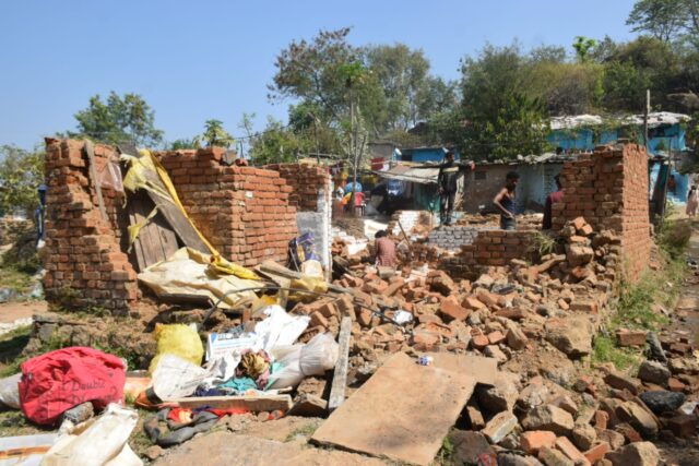 मदन महल पहाड़ी को अतिक्रमण मुक्त कराने के मध्यप्रदेश उच्च न्यायालय के आदेश का अनुपालनसुनिश्चित करने सर्वोच्च न्यायालय द्वारा दिये गये निर्देशानुसार आज रविवार को लगातार दूसरे दिन भी पुरवा क्षेत्र से अतिक्रमण हटाने की कार्यवाही जारी रही। दूसरे दिन भी करीब तीस अवैध निर्माणों को हटाया गया तथा 28 परिवारों को तेवर शिफ्ट किया गया। एसडीएम गोरखपुर अनुराग सिंह ने बताया कि नगर निगम और पुलिस के सहयोग से रविवार को मदनमहल पहाड़ी से विस्थापित किये गये सभी परिवारों के साथ-साथ उनके गृहस्थी के सामान को भी नगर निगम के वाहनों से ग्राम तेवर भेजा गया। विस्थापित परिवारों को पुनर्वास स्थल तेवर में बांस, बल्ली और तिरपाल भी उपलब्ध कराये गये हैं। इसके साथ ही उनकी भोजन की व्यवस्था भी प्रशासन