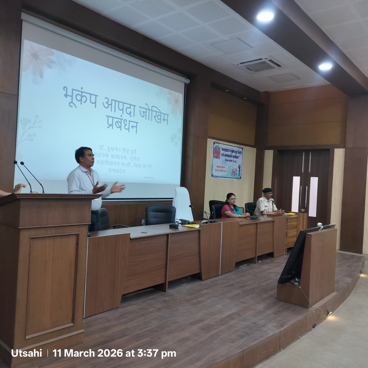 कटनी – जिले में आपदा की स्थिति में त्वरित एवं प्रभावी राहत एवं बचाव कार्य सुनिश्चित करने के उद्देश्य से कलेक्टर श्री आशीष तिवारी के निर्देशानुसार 5 दिवसीय आपदा प्रबंधन प्रशिक्षण कार्यक्रम का आयोजन किया जा रहा है। पाँच दिवसीय प्रशिक्षण के तीसरे दिन बुधवार को जिले के समस्त एसडीएम, तहसीलदार एवं नायब तहसीलदारों को आपदा की स्थिति में त्वरित राहत एवं बचाव कार्यों की प्रक्रिया, खोज एवं बचाव तकनीक के संबंध में विस्तृत जानकारी प्रदान की गई।विशेषज्ञ प्रशिक्षक श्री वी के द्विवेदी सहायक प्राध्यापक शासकीय तिलक महाविद्यालय कटनी के द्वारा प्रतिभागियों को आपदा का प्रकार, भूकंप में किये जाने वाले प्राथमिक कार्य के बारे में जानकारी दी गई।तत्पश्चात् द्वितीय विशेषज्ञ प्रशिक्षक श्री अशोक जोशी, अभियंता, परियोजना कार्यान्वयन इकाई पीआईयू विभाग द्वारा आपदा से पूर्व एवं आपदा पश्चात् संरचनाओं का सुरक्षित निर्माण के संबंध में महत्त्वपूर्ण प्रशिक्षण प्रदान किया गया। इसके बाद राजेन्द्र सिंह बघेल जिला होमगार्ड कमांडेंट द्वारा आपदा खासकर भूकंप के दौरान अपनाये जाने वाले प्राथमिक उपचार व बचाव कार्य के संबंध में एसडीआरएफ के समन्वय से प्रशिक्षण दिया गया। इस दौरान प्रतिभागियों को विभिन्न आपदा परिस्थितियों में सुरक्षित तरीके से लोगों को बचाने तथा घायल व्यक्तियों को प्रारंभिक उपचार प्रदान करने के व्यावहारिक पहलुओं से अवगत कराया गया।प्रशिक्षकों द्वारा प्रतिभागियों को आपदा के दौरान समन्वित कार्यवाही, संसाधनों के प्रभावी उपयोग तथा टीम वर्क के महत्व के बारे में भी विस्तार से बताया गया। साथ ही प्रशिक्षण के दौरान व्यावहारिक अभ्यास के माध्यम से प्रतिभागियों को आपदा की स्थिति में त्वरित प्रतिक्रिया देने की तकनीकों का अभ्यास कराया गया।प्रशिक्षण कार्यक्रम में विभिन्न विभागों के अधिकारी-कर्मचारी एवं संबंधित प्रतिभागी सक्रिय रूप से भाग ले रहे हैं। प्रशिक्षण के आगामी सत्रों में प्रतिभागियों को आपदा प्रबंधन से संबंधित अन्य महत्वपूर्ण विषयों पर विशेषज्ञों द्वारा विस्तृत प्रशिक्षण प्रदान किया जाएगा।