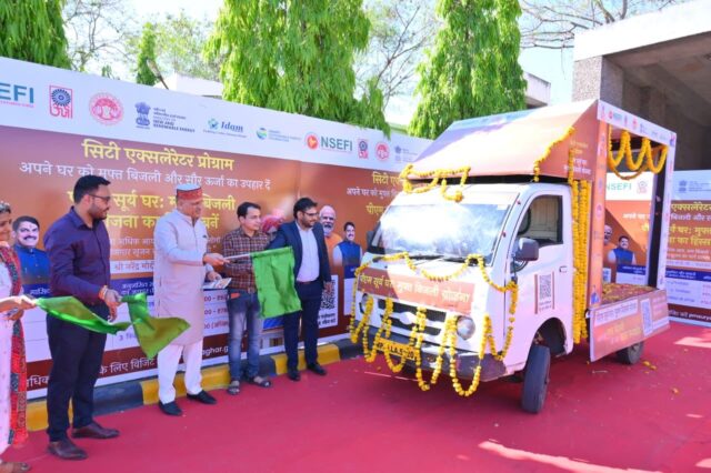 एनएसईएफआई द्वारा बुधवार को सिटी एक्सीलेरेटर प्रोग्राम (सीएपी) के अंतर्गत “सोलर सूर्य रथ” के फ्लैग-